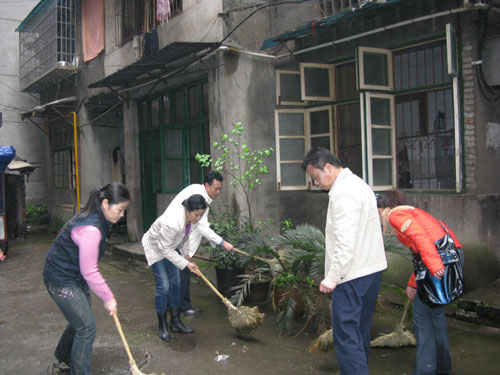 我院開展“全民衛(wèi)生日”活動有聲有色 發(fā)布時間:2009年4月11日 預(yù)覽:17754次 我院開展文明創(chuàng)建“全民衛(wèi)生日”活動有聲有色 為了搞好院容院貌建設(shè),努力創(chuàng)造一個清新舒適的醫(yī)療和工作環(huán)境。醫(yī)院文明創(chuàng)建工作小組認(rèn)真執(zhí)行上級有關(guān)愛國衛(wèi)生、環(huán)境保護等各項法規(guī)政策,高度重視和大力支持醫(yī)院環(huán)境的綠化、美化、凈化工作,切實做到“門前三包,門內(nèi)達(dá)標(biāo)”。 今年以來,按照有關(guān)部門部署,我院文明創(chuàng)建“全民衛(wèi)生日”活動衛(wèi)生包干區(qū)域由原雁城路調(diào)整到醫(yī)院家屬區(qū)內(nèi),醫(yī)院文明創(chuàng)建工作領(lǐng)導(dǎo)小組高度重視,召開專門會議,布置相關(guān)任務(wù),并對以往工作中做得不足的地方予以改進(jìn)。將原來的“全民衛(wèi)生日”活動小組細(xì)分為8個小組,院領(lǐng)導(dǎo)親自掛帥,并落實組長責(zé)任制,制定一系列的考勤、獎罰措施,確保我院文明創(chuàng)建“全民衛(wèi)生日”活動開展扎實、有效。通過努力,我院院容院貌煥然一新。在每周全市文明創(chuàng)建工作領(lǐng)導(dǎo)小組驗收情況通報中屢屢榮登“紅旗榜”。 圖為 “全民衛(wèi)生日”小組成員冒雨參加衛(wèi)生活動情景。