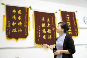 市中心醫(yī)院護理部主任來臨看著墻上的錦旗如數(shù)家珍。 本報記者 陳書云 攝