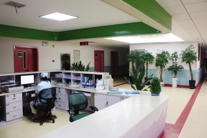 走進病房區(qū),記者眼前一亮。在兒科病房的走廊,記者看到的是粉紅色的門、淺綠色的墻壁和淡藍色的地板,讓人產生“驚艷”的感覺!而在產科病房區(qū),記者看到的又是另一種“景色”:玫瑰色的門、淺綠色的墻壁和黃色的地板。婦科病房區(qū)則是由粉紅色、淺綠色和黃色搭配起來,顯然也經過了一番悉心布置。