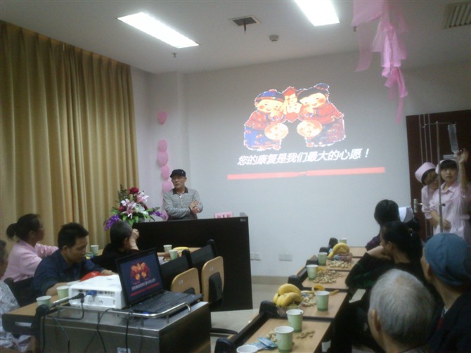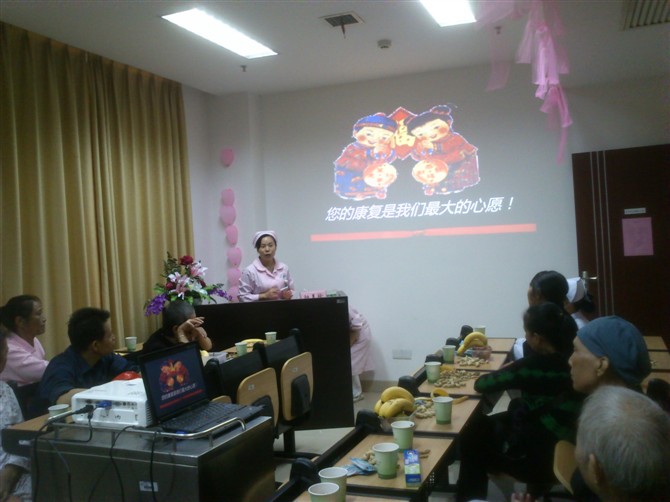 下午兩點(diǎn)左右,病友們迫不及待地來(lái)到了會(huì)場(chǎng)。會(huì)場(chǎng)里座無(wú)虛席,鮮花綻開(kāi)笑臉,彩帶舞動(dòng),瓜果飄香,護(hù)士姐妹們忙著端茶送水迎接尊貴的客人。茶話會(huì)由易曉科護(hù)士長(zhǎng)主持。唐玉成首先向病人介紹了衡陽(yáng)市中心醫(yī)院這所百年老院悠久而輝煌的歷史、燦爛的仁濟(jì)文化和腫內(nèi)一區(qū)優(yōu)秀的醫(yī)護(hù)團(tuán)隊(duì),熱情地向患者發(fā)出了“請(qǐng)把您的健康交給我”這樣的邀請(qǐng)。這是一句真誠(chéng)的邀請(qǐng),更是一份負(fù)責(zé)的承諾!接下來(lái),陽(yáng)美玲助理為病友及家屬講解了《癌痛的規(guī)范化治療》,告訴大家癌痛就是一種不舒服的感覺(jué),是第五大生命體征;告訴大家有癌痛就需要止痛治療,需要規(guī)范化的治療。30分鐘的淺顯易懂的講座幫助大家走出對(duì)癌痛的恐懼和誤區(qū)。聽(tīng)了講座,大家臉上都洋溢著微笑,未來(lái)似乎變得美好了很多。之后,易護(hù)士長(zhǎng)又為各位病友介紹了腫內(nèi)一區(qū)高新靜脈穿刺技術(shù)-------PICC的開(kāi)展情況及日常維護(hù),以幫助病人更好地保護(hù)血管,實(shí)現(xiàn)全程無(wú)痛化療。會(huì)議一直在愉快輕松的氛圍下進(jìn)行著。