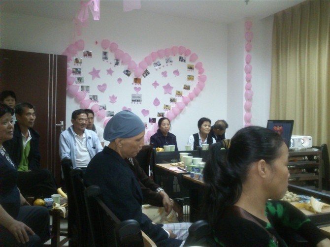 為開(kāi)好這次會(huì)議,科主任唐玉成和護(hù)士長(zhǎng)易曉科高度重視﹑精心準(zhǔn)備。他們給每名患者派送了邀請(qǐng)函,發(fā)放科室名片,既體現(xiàn)出對(duì)病友的無(wú)限尊敬,又架起了醫(yī)患溝通的橋梁。盡管這樣的會(huì)議經(jīng)常召開(kāi),但科室的每個(gè)醫(yī)護(hù)人員都投入了十二分的熱情。布置會(huì)場(chǎng)﹑準(zhǔn)備課件﹑采購(gòu)禮品﹑征集病人留言等,醫(yī)護(hù)人員各司其職。病友也是翹首期盼,踴躍參與,有的當(dāng)參謀,有的幫忙吹氣球……。護(hù)士李倩心靈手巧,別出心裁地布置了精美的文化墻:粉紅的氣球拼成了巨大的“愛(ài)心”,“愛(ài)心”中央是腫內(nèi)一區(qū)全家福,四周?chē)@著病人的寶貴留言,有的是樹(shù)葉形狀,有的成圓形,一句句真誠(chéng)的感謝是對(duì)腫瘤一區(qū)工作的最高獎(jiǎng)賞,一張張陽(yáng)光般燦爛的笑臉彰顯著天使的魅力和對(duì)未來(lái)的憧憬……。文化墻中融入了病人心聲和天使風(fēng)采,彰顯著無(wú)限的溫馨和快樂(lè)。