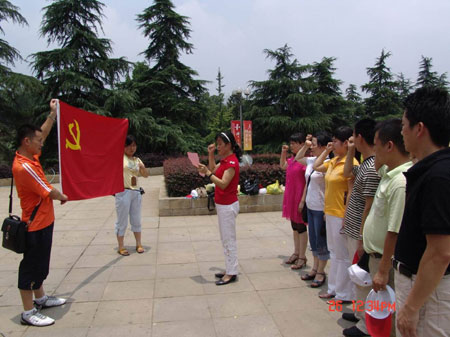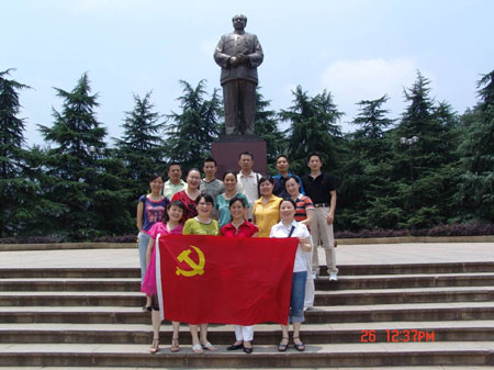 黨員歡聚韶山 發(fā)布時(shí)間:2004年6月28日 預(yù)覽:10395次 黨員活動(dòng) 中國(guó)共產(chǎn)黨誕辰87周年前夕,醫(yī)院黨委于6月26日組織8名新黨員和部分優(yōu)秀黨員赴韶山參觀學(xué)習(xí),并在毛澤東銅像廣場(chǎng)莊嚴(yán)宣誓。圖為黨員宣誓和參觀學(xué)習(xí)照片。 院辦:冷曉君