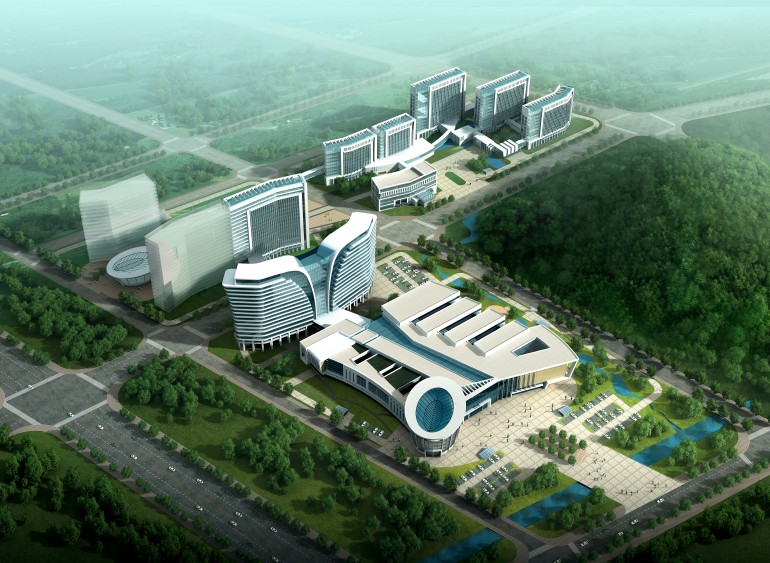 圖為市中心醫(yī)院異地?cái)U(kuò)建新院鳥瞰圖
