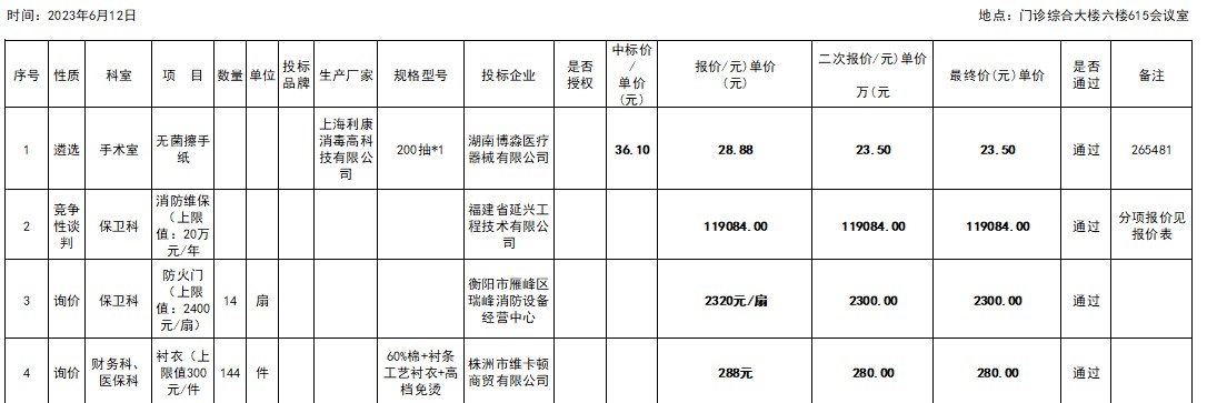 衡陽(yáng)市中心醫(yī)院2023.6.12院內(nèi)招標(biāo)議價(jià)結(jié)果公示 發(fā)布時(shí)間:2023年06月15日 17:50:09 預(yù)覽:124360次