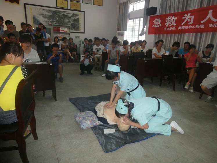 我院參加“世界急救日”宣傳活動掠影 發(fā)布時間:2013年9月16日 預(yù)覽:2564次 每年9月的第二個星期六是“世界急救日”。 9月14日,我院急診科與市紅十字會聯(lián)合在南華大學(xué)工學(xué)院開展了“生命高于一切”、“急救為人人”的急救知識與技能的宣傳活動。此次活動旨在普及衛(wèi)生救護知識、提高人們的互救自救能力,讓更多的人士掌握急救技能技巧,在事發(fā)現(xiàn)場挽救生命和降低傷害程度。 (急診科 王影)