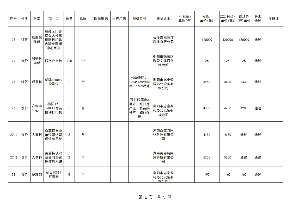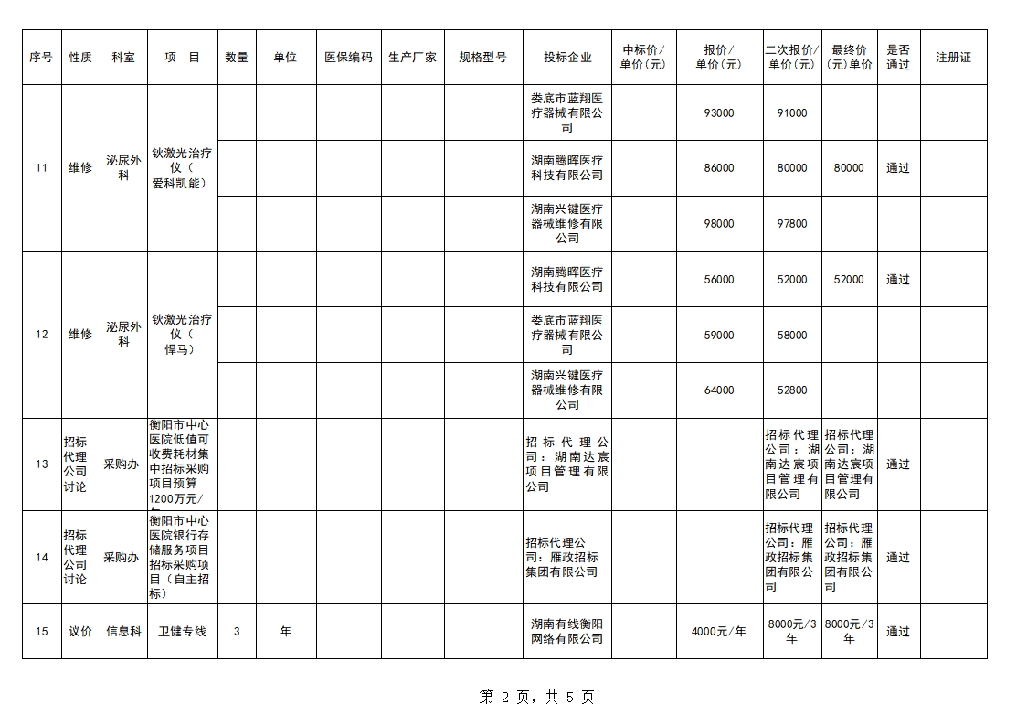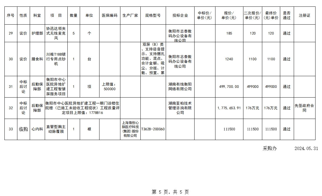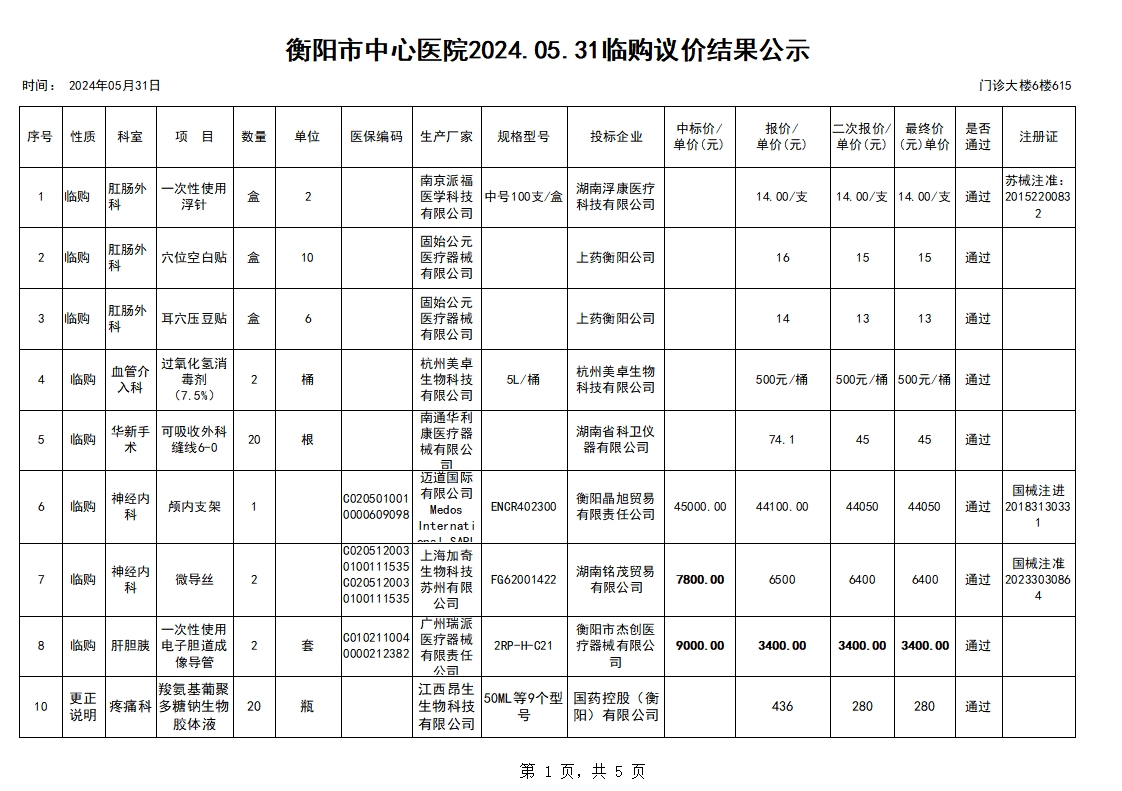 衡陽市中心醫(yī)院2024.05.31臨購議價結(jié)果公示