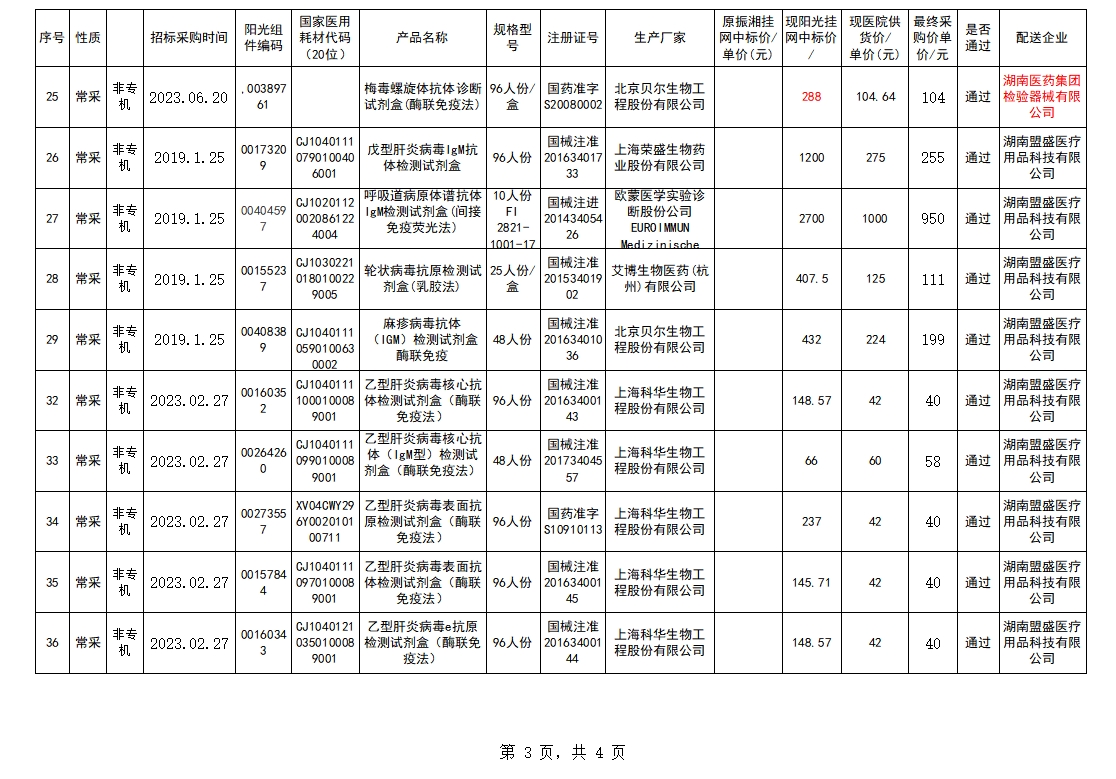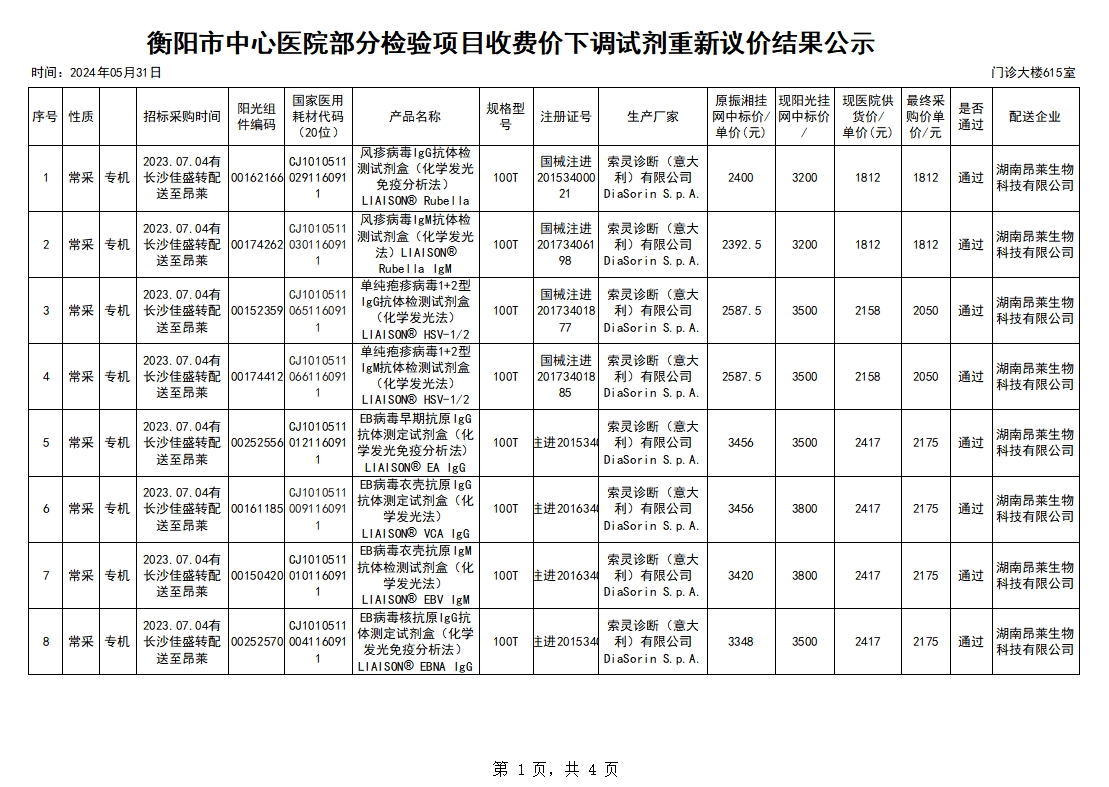 衡陽市中心醫(yī)院部分檢驗項目收費價下調(diào)試劑重新議價結(jié)果公示(5.31)