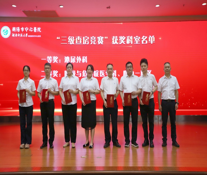 泌尿外科榮獲三級查房競賽一等獎;呼吸與危重癥醫(yī)學(xué)科、心內(nèi)一病區(qū)榮獲三級查房競賽二等獎;內(nèi)分泌科、消內(nèi)一區(qū)、中醫(yī)科、老年醫(yī)學(xué)科榮獲三級查房競賽三等獎。醫(yī)院黨委委員、副院長全金龍為獲獎科室頒獎。