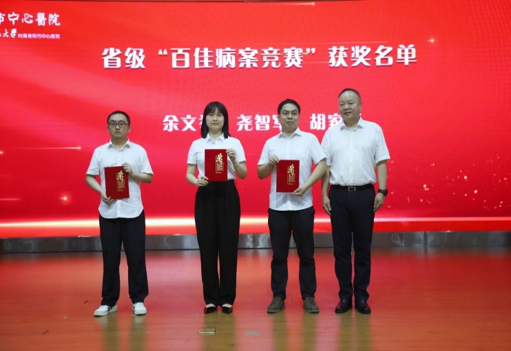王琪、王靜、龍會、劉一笑、劉?,?、許欣、楊彪、陳小花、趙麗萍、徐正美、龔衛(wèi)東、庾江東榮獲市級“百佳病案”優(yōu)秀獎,工會主席周素英為院級獲獎人員頒獎;馬克強、盧鋒、凌云、馮朝霞、方超榮獲市級“百佳病案”優(yōu)秀獎,院長尹軍為市級獲獎人員頒獎;余文舉、堯智軍、胡家麗榮獲省級“百佳病案”競賽優(yōu)秀獎,黨委書記申惠龍為省級獲獎人員頒獎。