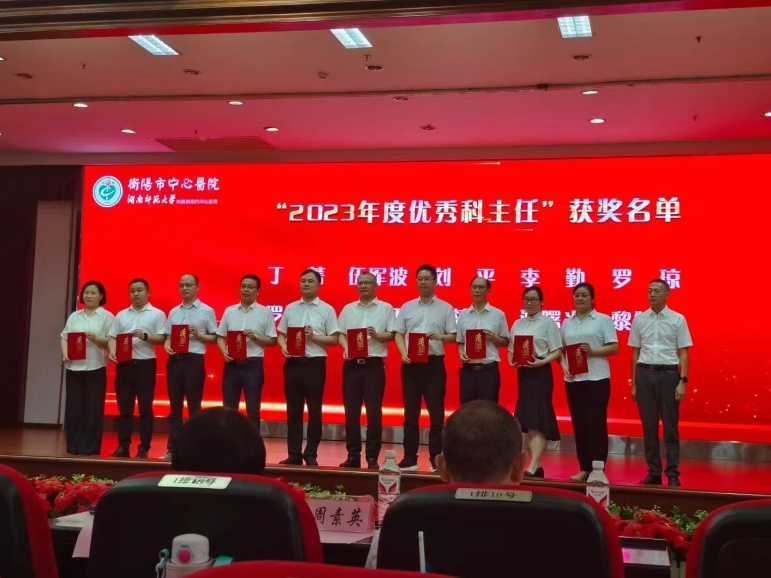 丁菁、伍軍波、劉平、李勤、羅瓊、羅湘平、蔣水平、譚滇湘、譚曙光、黎婷婷榮獲“2023年度優(yōu)秀科主任”榮譽稱號。黨委委員、副院長羅曉波為獲獎人員頒獎。