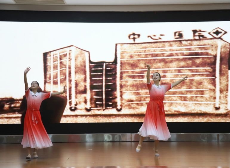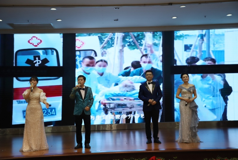 腎內(nèi)一病區(qū)主任譚偉等4人帶來了歌曲表演《向光而行》,都以悠揚的旋律和深情的歌詞,訴說著每一位醫(yī)護人員心中對生命的敬畏,對使命的執(zhí)著。