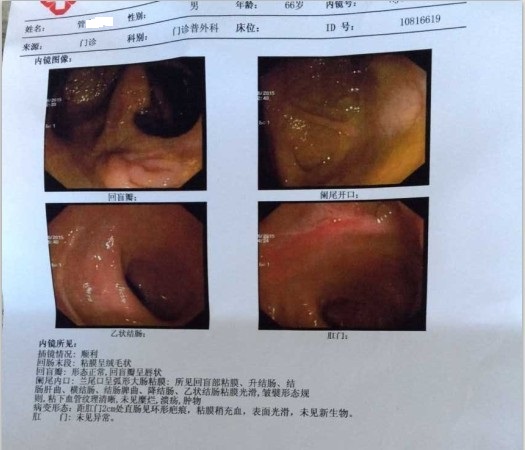 患者術(shù)后5月復(fù)查腸鏡,恢復(fù)良好