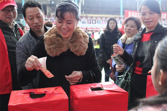 我院參加“心得樂”愛心捐款活動(dòng) 發(fā)布時(shí)間:2015年2月16日 預(yù)覽:3927次 2015年2月14日,工會(huì)主席蔡春香帶領(lǐng)我院的愛心小分隊(duì)來到衡陽市岳屏廣場(chǎng)內(nèi)市體?;@球俱樂部的《心得樂》“窮娃盼過年”面對(duì)面捐款活動(dòng)現(xiàn)場(chǎng)。帶著醫(yī)院黨委、行政的囑托、帶著1400名干部職工的濃濃愛心,將壹萬元愛心款捐給了來自衡陽七縣兩區(qū)的100位貧困孩子。同時(shí),愛心小分隊(duì)隊(duì)員們也獻(xiàn)上了個(gè)人愛心捐款。我們的愛心,能讓孩子們過一個(gè)溫暖、開心的年;我們的善舉,也許會(huì)改變他們的一生;我們的捐款,同時(shí)也會(huì)讓自己的良心得到快樂! (王恩萍)