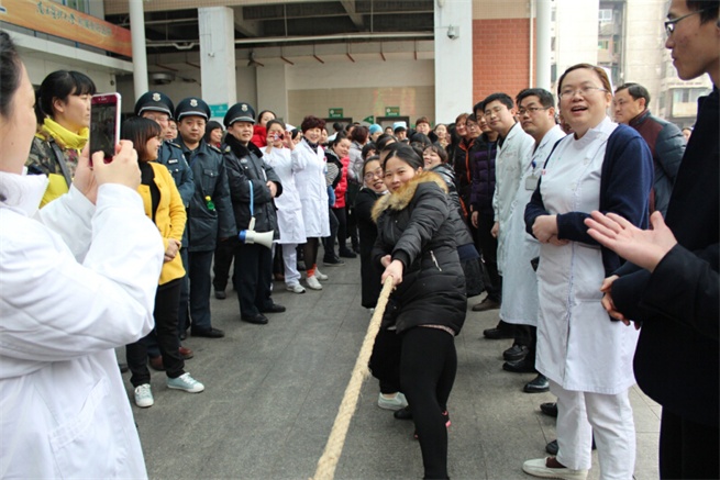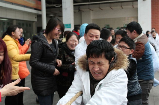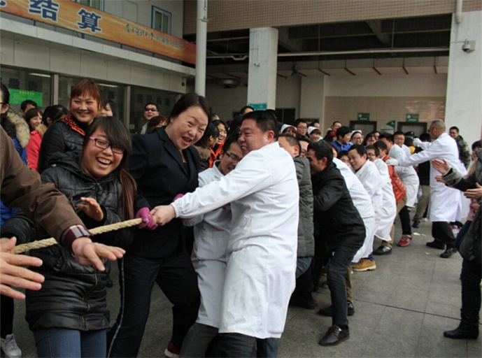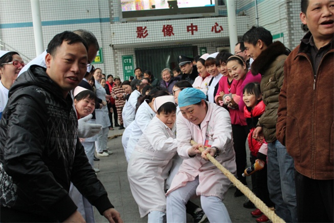 我院舉行慶“三·八”拔河比賽 發(fā)布時間:2015年3月7日 預(yù)覽:4611次 陽春三月,春暖花開。為紀(jì)念“三·八”國際勞動婦女節(jié),3月6日下午,衡陽市中心醫(yī)院工會舉辦了慶“三·八”拔河比賽,來自機關(guān)后勤、門診醫(yī)技、內(nèi)科、外科及華新分工會5支代表隊的60余名運動員代表參加了比賽。 比賽場上各個代表隊的運動員情緒飽滿、斗志昂揚,他們在比賽場上揮灑汗水、奮力拼博,展示出勇爭一流、奮發(fā)向上的精神風(fēng)貌。整場比賽氣氛熱烈,整個賽程熱情高漲,隊員間的合作充分體現(xiàn)了團隊合作精神,以及頑強拼搏的體育精神,現(xiàn)場觀戰(zhàn)的啦啦隊更是為運動員們吶喊助威,現(xiàn)場氣氛十分熱烈。通過緊張激烈的角逐華新分工會的女隊和門診醫(yī)技分工會的男隊榮獲本次比賽的第一名。 (文:王恩萍/圖:王穎超)