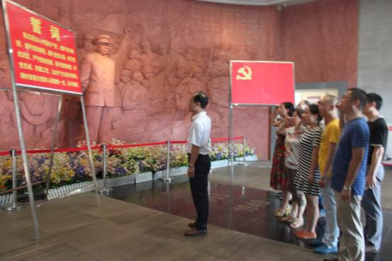 接著,大家相繼參觀了羅榮桓故居、羅榮桓紀(jì)念館。在羅榮桓紀(jì)念館,看著展出的一幅幅各個(gè)時(shí)期珍貴的歷史照片,重要的革命歷史文獻(xiàn),大家了解到了羅榮桓元帥光輝戰(zhàn)斗的一生,深刻地體會(huì)到了羅榮桓元帥崇高的愛國主義情懷和為了革命事業(yè)奉獻(xiàn)終生的偉大情操,受到了一次深刻的愛國主義教育。在羅元帥的雕像前,面對鮮紅的黨旗,大家共同舉起右手,又一次重溫入黨誓詞。
