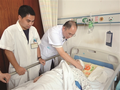 “我婆婆已經(jīng)醒過來了,現(xiàn)在能夠說話,手腳也能活動(dòng)了?!?月10日,在市中心醫(yī)院神經(jīng)內(nèi)科的病房里,一位阿姨興奮地告訴記者,她婆婆姓文,今年已經(jīng)71歲了, 8月10日晚上,婆婆在洗澡后,突然感覺頭痛,嘔吐,手腳不能活動(dòng),緊接著就昏迷了。家人急忙將她送到了市中心醫(yī)院搶救。經(jīng)檢查,文奶奶為突發(fā)腦出血,生命危在旦夕。