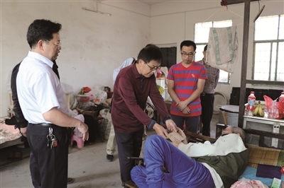 市中心醫(yī)院深入耒陽開展“一進二訪”活動 發(fā)布時間:2015年10月24日 預覽:3126次 10月16日,市中心醫(yī)院院長申錦林(中)帶領(lǐng)醫(yī)院扶貧工作隊深入耒陽市肥田鎮(zhèn)肥美村開展“一進二訪”活動。65歲的村民段文勝,33年前罹患下肢脈管炎,去年,他身體癱瘓,生活起居一直在床上,暫時寄住在村部活動室。申錦林了解這些情況后,立即安排組織醫(yī)院專家前來為段文勝作進一步診斷和治療。每到一家,工作隊都會通過拉家常、揭鍋蓋、看被褥的形式,詳細了解扶貧對象和貧困戶的家庭結(jié)構(gòu)、收入來源、致貧原因和生產(chǎn)生活等情況,并為特困戶送上慰問金。(澗君 攝影報道) (來源:2015年10月23日 《衡陽晚報》)