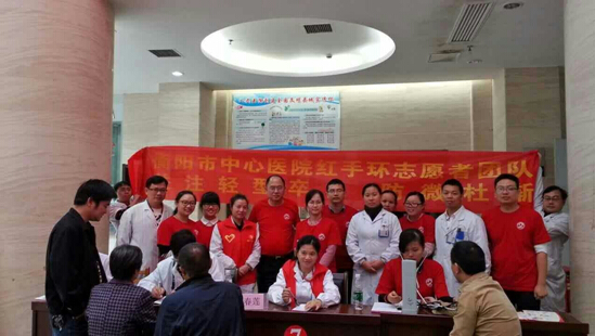 世界卒中日,我院“紅手環(huán)”相約衡東 發(fā)布時(shí)間:2015年11月2日 預(yù)覽:5666次 10月29日是一個(gè)特別的日子——第十個(gè)世界卒中日,也是我院紅手環(huán)志愿者服務(wù)團(tuán)相約衡東義診的日子。今年世界卒中日的主題是“關(guān)注輕型卒中,防微杜漸,共筑防線(xiàn)”。當(dāng)天早上七點(diǎn),在我院副院長(zhǎng)鄒建軍的帶領(lǐng)下,紅手環(huán)志愿者、青年醫(yī)師協(xié)會(huì)等一行17人來(lái)到衡東縣人民醫(yī)院,圍繞“關(guān)注中年人的卒中風(fēng)險(xiǎn)”主題,開(kāi)展卒中健康宣教和義診活動(dòng)。 到達(dá)義診現(xiàn)場(chǎng)后,志愿者們被分為二組,一組由胡新平主任帶隊(duì),在門(mén)診為這里已排成長(zhǎng)龍的百姓診療、測(cè)血壓、血糖,發(fā)放卒中教育資料等。另一組則由丁菁主任帶隊(duì)參與查房和教學(xué),與相關(guān)科室就疑難病例、危重病人的診斷及治療展開(kāi)討論。下午3點(diǎn),幾位志愿者們還進(jìn)行了健康講座。胡新平主任就卒中的一級(jí)預(yù)防及FAST快速識(shí)別卒中及發(fā)病后的緊急救治方法進(jìn)行了詳細(xì)的講解。劉靜醫(yī)師、康琴護(hù)士則分別就腦卒中的一級(jí)預(yù)防和護(hù)理等進(jìn)行了講述。 這一天,一群穿著紅上衣,戴著紅手環(huán)的志愿者們成為了當(dāng)?shù)蒯t(yī)院最靚麗的一道風(fēng)景線(xiàn)。他們不僅得到了當(dāng)?shù)蒯t(yī)務(wù)人員的肯定,更得到了百姓們的歡迎和擁戴。最后,大家在當(dāng)?shù)厝罕姛崃业恼坡曋薪Y(jié)束了本次衡東之行。 此次“走進(jìn)世界卒中日、相約衡東”活動(dòng),是我院志愿者們對(duì)紅手環(huán)精神“堅(jiān)定執(zhí)著、無(wú)私奉獻(xiàn)、守護(hù)健康、服務(wù)社會(huì)”的一種踐行,是對(duì)紅手環(huán)志愿者服務(wù)團(tuán)誓言鏗鏘有力的回音。他們用自已的時(shí)間、知識(shí)、技能和資源,為衡東人民提供了卒中及相關(guān)知識(shí)和技能教育、健康服務(wù),用他們的真誠(chéng)與愛(ài)心,喚起人們關(guān)注腦卒中,預(yù)防腦卒中,以更好地造福人民群眾。 (劉立君 聶利洛 康琴)