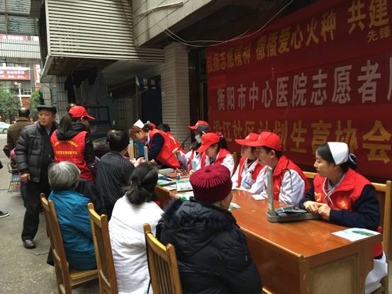 國(guó)際志愿者日 我們?cè)谛袆?dòng) 發(fā)布時(shí)間:2015年12月7日 預(yù)覽:26211次 2015年12月4日上午9點(diǎn),由市委宣傳部、團(tuán)市委、市文明辦舉辦的衡陽(yáng)市紀(jì)念第30個(gè)國(guó)際志愿者日暨志愿服務(wù)先進(jìn)典型表彰活動(dòng)在市體育中心隆重舉行。我院由骨科、普外科、神經(jīng)內(nèi)科、心內(nèi)科、呼吸內(nèi)科以及護(hù)理部的25名醫(yī)務(wù)人員組成的志愿者服務(wù)隊(duì)參加了此次活動(dòng)。 參加完表彰活動(dòng)后,志愿服務(wù)隊(duì)員們又馬不停蹄地趕往雁峰區(qū)沿江社區(qū)開(kāi)展義診活動(dòng)。義診持續(xù)了一個(gè)多小時(shí),志愿者們?yōu)榍皝?lái)問(wèn)診的市民們提供健康咨詢(xún)、檢查身體、測(cè)量血壓等服務(wù)。據(jù)統(tǒng)計(jì),此次活動(dòng)共義診80余人,發(fā)放健康宣傳手冊(cè)100多份?;顒?dòng)結(jié)束后,我院志愿者們紛紛表示要更加積極地投身志愿服務(wù),開(kāi)展更多內(nèi)容豐富的志愿活動(dòng)。 (團(tuán)委)