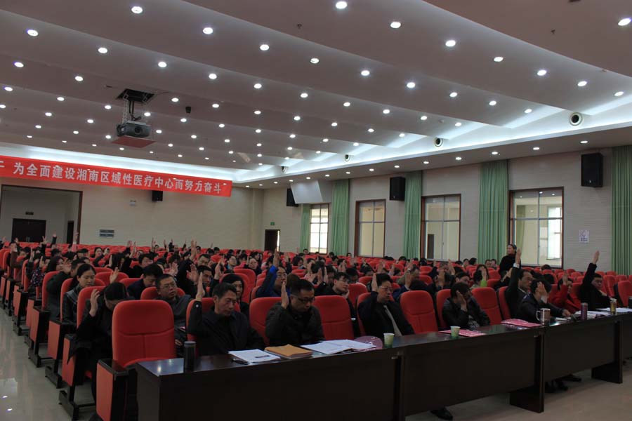 猴年新年伊始,我院召開第八屆一次職工代表大會。會議號召,全院干部職工要牢牢抓住“十三•五”期間的發(fā)展機遇,保持良好開局勢頭,統(tǒng)一思想,凝心聚力,創(chuàng)新驅動,穩(wěn)步推進,早日建成綜合優(yōu)勢明顯、??铺厣怀龅南婺蠀^(qū)域性醫(yī)療中心。