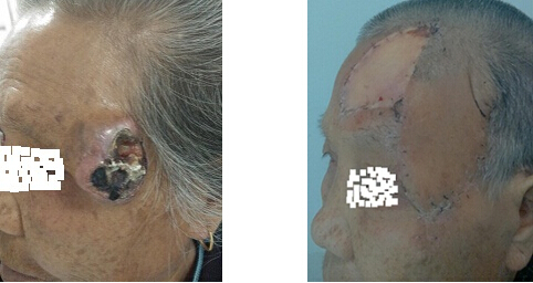近年來(lái),我院燒傷整形科采用整形技術(shù)治療面部惡性腫瘤百余例,達(dá)到良好的效果。我們?cè)谛忻娌繍盒阅[瘤病變組織擴(kuò)大切除的同時(shí),結(jié)合整形修復(fù)技術(shù)有效地修復(fù)創(chuàng)面,為患者保持了最佳的容貌效果。