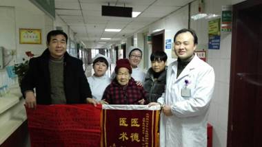 羅奶奶,衡南縣人,98歲高齡,平時跟兒子居住在桂林,2016年1月10日突發(fā)劇烈腹痛,在當?shù)蒯t(yī)院就診,確診為“腹腔巨大腫瘤”,急需手術治療,但因羅奶奶年事已高,耐受手術能力差,手術風險高,桂林多家大醫(yī)院均拒絕收治。羅奶奶兒子焦急萬分,通過家鄉(xiāng)親戚介紹,慕名前來我院肝膽外科。患者入院后經急診CT檢查示:腹腔有一大小15.×16×18cm巨大腫瘤,腫瘤已經扭轉,開始破裂出血,病情十分危重,羅奶奶危在旦夕,只有急診手術才有一絲希望??粗颊咄纯嗟拿嫒?、家屬期盼的目光,手術做還是不做?如何去做?如果不做手術,患者隨時有生命危險;如果做,年邁體弱的患者能否承受麻醉以及手術的打擊,能否安全度過圍手術期,疾病能否得到根治?“醫(yī)者仁心,我無法拒患者于門外,并且我相信我們的科室、我們的團隊、我們的醫(yī)院有這個能力完成這個高難度的手術!”肝膽外科主任李珍發(fā)如是說。經過精心、細致、周密的圍手術期準備后,李珍發(fā)主任、副主任醫(yī)師蔣水平帶領科室手術團隊,在麻醉科主任段雪琴的密切配合下,成功為患者摘除重達10余斤的腹部巨大腫瘤。術后,在許敏護士長帶領的護理團隊精心護理下,羅奶奶恢復順利,能下床自由活動,未出現(xiàn)任何并發(fā)癥,10日后痊愈出院。出院時,羅奶奶及全家感激不已,特向科室送來感謝信和錦旗。