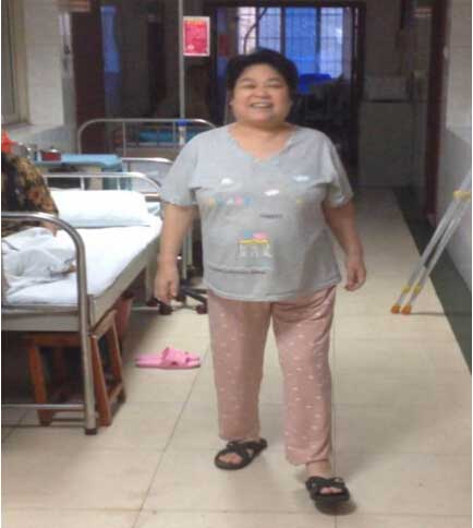 膝關(guān)節(jié)骨性關(guān)節(jié)炎患者的福音 發(fā)布時(shí)間:2016年8月5日 預(yù)覽:2378次 隨著我國老齡化問題的加劇,膝關(guān)節(jié)炎患者越來越多,他們之中有很多人,因?yàn)橄リP(guān)節(jié)病變長(zhǎng)期忍受著病痛的折磨。我院骨科二區(qū)關(guān)節(jié)外科唐雄主任認(rèn)為,患有膝關(guān)節(jié)炎的病友們應(yīng)當(dāng)選擇及時(shí)到醫(yī)院就診,盡早解除痛苦,提高生活質(zhì)量。 2015年10月,我院骨科二區(qū)迎來了62歲的李姓患者,她是一名類風(fēng)濕性關(guān)節(jié)炎的患者,病程10年。10年前,她被查出患有嚴(yán)重的類風(fēng)濕性關(guān)節(jié)炎,全身多處小關(guān)節(jié)疼痛,自那以后,患者就長(zhǎng)期依靠激素來控制病情。2年前,患者雙側(cè)膝關(guān)節(jié)開始出現(xiàn)疼痛、腫脹,起初還能下地走200米左右,后來走50米都感覺費(fèi)力,雙下肢膝關(guān)節(jié)出現(xiàn)變形,靠鎮(zhèn)痛藥物才能入睡。起初患者認(rèn)為,類風(fēng)濕關(guān)節(jié)炎是自己的老病,沒得治,拒絕來醫(yī)院就診。最后,實(shí)在痛苦難忍,遂在家人的陪伴下來到我院骨科二區(qū)就診。 來院后,骨科二區(qū)唐雄主任、廖浩主治醫(yī)師熱情接待了她。經(jīng)查,患者為嚴(yán)重的類風(fēng)濕性關(guān)節(jié)炎導(dǎo)致的雙膝關(guān)節(jié)破壞,雙膝關(guān)節(jié)內(nèi)翻畸形并嚴(yán)重的骨質(zhì)缺損,同時(shí)由于患者長(zhǎng)期服用激素類藥物,其全身骨質(zhì)均有嚴(yán)重的骨質(zhì)疏松?;颊叩弥∏閲?yán)重性后,感到失望、沮喪,唐雄主任信心滿滿地安慰道,“您這種情況行膝關(guān)節(jié)置換術(shù),就能徹底解決關(guān)節(jié)疼痛和雙膝關(guān)節(jié)不能活動(dòng)的問題?!庇谑牵∪擞种匦氯计鹆藢?duì)生活的希望,并要求盡快進(jìn)行手術(shù)治療。 考慮到患者為長(zhǎng)期慢性病病人,唐雄主任決定先給患者疼痛程度更高的右側(cè)膝關(guān)節(jié)進(jìn)行手術(shù)治療。經(jīng)過完善備血、調(diào)整激素用量等術(shù)前準(zhǔn)備后,2015年10月10日,唐主任為患者進(jìn)行了右側(cè)膝關(guān)節(jié)人工關(guān)節(jié)置換術(shù),術(shù)后患者恢復(fù)良好。右側(cè)膝關(guān)節(jié)疼痛解除,術(shù)后3天右下肢能下地活動(dòng)。出院后,患者對(duì)右側(cè)膝關(guān)節(jié)置換術(shù)的效果非常滿意。 2016年7月17日,唐主任為該患者再次進(jìn)行了左膝關(guān)節(jié)人工關(guān)節(jié)置換術(shù)?;颊咝g(shù)后3天就能下地活動(dòng)。現(xiàn)在她的臉上又出現(xiàn)了燦爛的笑容,她逢人就說,要是早一點(diǎn)來手術(shù)治療,就能早一點(diǎn)擺脫病痛的折磨了。 人工髖、膝關(guān)節(jié)置換術(shù)是自上個(gè)世紀(jì)以來在醫(yī)學(xué)中最成功的手術(shù)之一,目前,對(duì)于各種終末期關(guān)節(jié)病治療,人工髖、膝關(guān)節(jié)置換術(shù)取得了革命性的成功。我院骨科二區(qū)關(guān)節(jié)外科自上世紀(jì)80年代開始就開展了人工關(guān)節(jié)置換術(shù),積累了豐富的經(jīng)驗(yàn)與技術(shù),此項(xiàng)手術(shù)技術(shù)成熟,病人愈后好,能徹底解決因長(zhǎng)期膝關(guān)節(jié)帶來的痛苦,大大提高了病人的生活質(zhì)量。 擁有好的關(guān)節(jié),健步你的人生——這是我們關(guān)節(jié)外科全體醫(yī)務(wù)人員共同奮斗的目標(biāo)。 (骨科二區(qū) 廖浩)