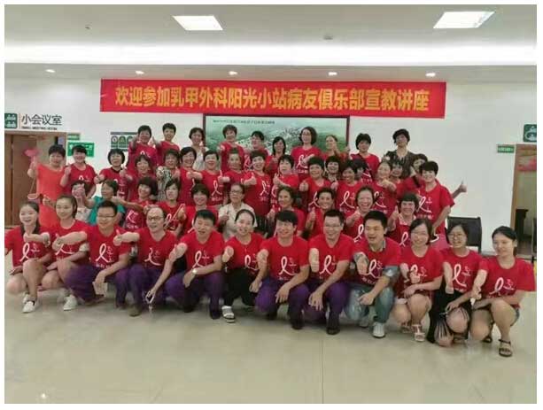 醫(yī)患攜手,重建華彩人生 發(fā)布時(shí)間:2016年9月23日 預(yù)覽:2269次 2016年9月13號(hào),乳甲外科陽(yáng)光小站舉行了第二屆粉紅絲帶乳腺癌關(guān)愛(ài)月系列宣教活動(dòng)。 尹軍主任介紹乳腺癌近年來(lái)發(fā)病率及臨床表現(xiàn),以及我院乳甲科近兩年發(fā)展?fàn)顩r。 羅瓊主治醫(yī)師向患者講解乳腺癌飲食及生活方式方面注意事項(xiàng)。 厲璐主管護(hù)師與病友交流 活動(dòng)合影