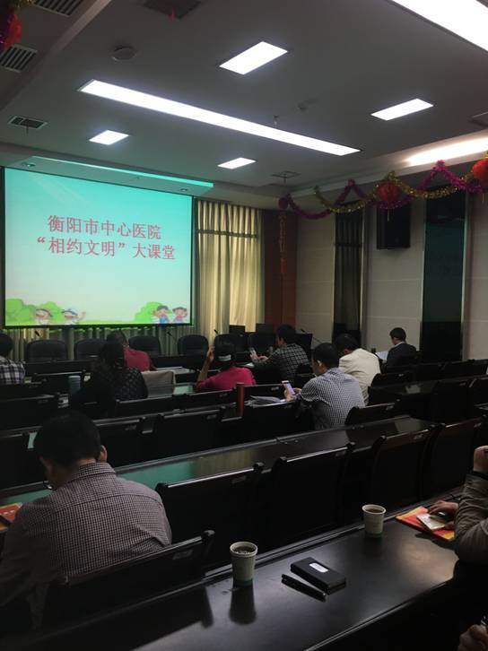 相約文明,開講啦 發(fā)布時(shí)間:2016年10月15日 預(yù)覽:2354次 為推進(jìn)文明創(chuàng)建工作的深入開展,2016年9月14日下午,衡陽市中心醫(yī)院“相約文明”大課堂在醫(yī)院21樓多功能會(huì)議廳舉行。 “相約文明”學(xué)習(xí)活動(dòng),是在衡陽市委、市政府領(lǐng)導(dǎo)下,市委宣傳部和市創(chuàng)建辦組織開展的一項(xiàng)全市性學(xué)習(xí)活動(dòng)。醫(yī)院創(chuàng)建辦擬定把家和萬事興、我愛我院、遠(yuǎn)親不如近鄰、“痰”吐之間、“堵”在心頭、“讓”出文明、有“禮”走遍天下、舌尖上的文明、E網(wǎng)情深、生財(cái)有道等10項(xiàng)內(nèi)容,帶進(jìn)醫(yī)院“相約文明”大課堂,讓全院職工從多個(gè)維度中受教育、得啟發(fā)、促提高,早日實(shí)現(xiàn)衡陽創(chuàng)建“全國文明城市”的目標(biāo)。 當(dāng)日開講的內(nèi)容是“文明服務(wù)、一起行動(dòng)”,通過視頻學(xué)習(xí)“醫(yī)務(wù)人員職業(yè)道德規(guī)范”及“醫(yī)院崗位文明用語”,給在場的學(xué)習(xí)者上重溫了一堂生動(dòng)的醫(yī)院“文明禮儀”課程。 (王恩萍)