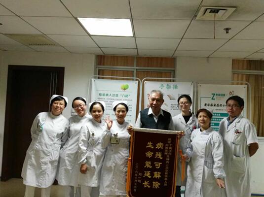 大醫(yī)精誠,患者送錦旗暖人心 發(fā)布時間:2016年10月26日 預(yù)覽:4558次 “感謝丁菁主任,感謝劉賽醫(yī)生,感謝羅護士長,感謝所有醫(yī)務(wù)人員的悉心照料,感謝……”,劉爺爺一邊道謝,手里還一邊拿著一面鮮紅的錦旗,杵著拐杖緩緩走向護士站,親自將寫著“病殘可解除,生命能延長”的錦旗交給我們,以表達他對醫(yī)生精湛醫(yī)術(shù)和醫(yī)護人員周到服務(wù)的感激之情。 劉爺爺因為下肢軟組織感染入住我科。剛?cè)朐簳r,由于炎癥侵襲,下肢紅腫嚴重,還冒有滲液,連下地行走都有些困難,對他的正常生活造成了嚴重影響。經(jīng)過丁主任和劉醫(yī)生采取了及時準確的對癥治療,加上白衣天使們的精心護理,病情迅速得到控制并逐漸痊愈,下肢肢體功能毫無影響。劉爺爺及其家人對此非常滿意,特意制作了一面錦旗贈送給我們。 我們從事醫(yī)療工作,可謂豐碑無語,但行勝于言,醫(yī)護人員的工作頻繁而瑣碎,盡心盡責(zé)做好每一件關(guān)乎健康與生命的事;患者一句理解的話語、一個鼓勵的眼神就是對醫(yī)護工作最大的肯定。一面錦旗代表的不止感激,更有深深的信賴…… 此時此刻,我也深深感受到自己肩上責(zé)任是如此之重,我們必須不斷充實自我,加強理論知識的深化,正確指導(dǎo)實踐,以更加專業(yè)的服務(wù)態(tài)度,為患者的健康保駕護航,為科室的建設(shè)和醫(yī)院的發(fā)展貢獻自己的綿薄之力! (歐陽敏)
