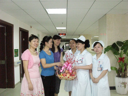 護(hù)士節(jié)慰問(wèn) 發(fā)布時(shí)間:2005年5月12日 預(yù)覽:6670次 國(guó)際5.12護(hù)士節(jié)前夕,帶著醫(yī)院黨委的囑托,院工會(huì)、護(hù)理部等相關(guān)科室前往臨床各科看望、慰問(wèn)了戰(zhàn)斗在臨床一線辛勤工作的護(hù)士姐妹們。慰問(wèn)組一行向白衣天使們致以節(jié)日的問(wèn)候,并給她們送去了節(jié)日的禮物。