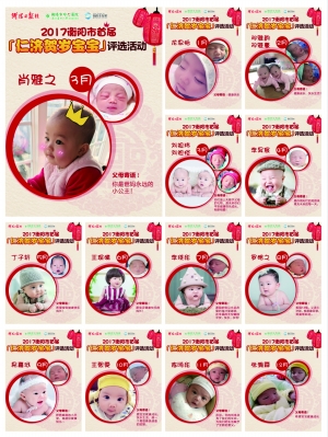 由衡陽日報社主辦、衡陽全搜索網(wǎng)攜手衡陽市中心醫(yī)院共同承辦的“2017衡陽首屆仁濟賀歲寶寶”評選投票活動已于2017年1月16日中午12點結(jié)束。肖雅之寶寶在36組寶寶中嶄露頭角,以21677票獲最佳人氣獎,將成為新春拜年臺歷當(dāng)之無愧的“封面寶寶”。