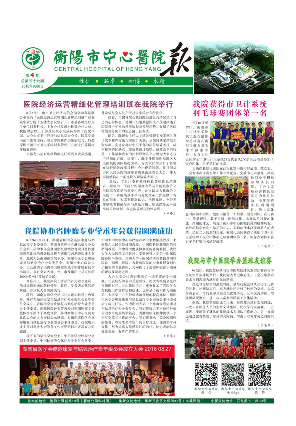 衡陽市中心醫(yī)院院報第4期總第五十六期