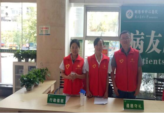 醫(yī)院堅(jiān)守“仁心仁術(shù)、濟(jì)世濟(jì)民”的服務(wù)理念,堅(jiān)持公益性,積極推進(jìn)志愿服務(wù)工作,大力弘揚(yáng)志愿服務(wù)精神。截止到2015年6月,全院注冊志愿者1033人,醫(yī)院創(chuàng)建辦組織協(xié)調(diào)、團(tuán)委協(xié)助,以科室、黨支部為單位開展各項(xiàng)志愿服務(wù)活動(dòng),包括交通勸導(dǎo)、醫(yī)療義診、幫助孤老、扶貧濟(jì)困、市內(nèi)重要活動(dòng)的醫(yī)療保障服務(wù)等,2015年以來,醫(yī)院共開展各類志愿服務(wù)33場次,受益群眾共10000人次。醫(yī)院在病友服務(wù)中心等場所設(shè)立志愿服務(wù)崗,每個(gè)支部派遣黨員輪流開展黨員志愿者服務(wù),為病人提供咨詢、引導(dǎo)、擔(dān)架、輪椅、飲水、復(fù)印、測血壓血糖、接待投訴、禁煙勸導(dǎo)、院內(nèi)交通疏導(dǎo)等各項(xiàng)服務(wù)。