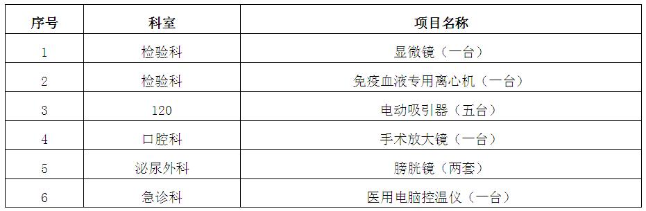 因醫(yī)院發(fā)展的需要,我院我院擬于近期對一批醫(yī)療設(shè)備進(jìn)行院內(nèi)招標(biāo)采購,歡迎具備條件的公司報名參加。
