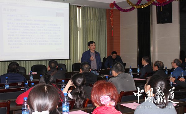 衡陽市中心醫(yī)院醫(yī)務(wù)部部長、大內(nèi)科主任、心內(nèi)科主任、胸痛中心行政總監(jiān)柏太柱講課。(陳平國 攝)