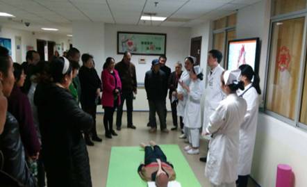 隨后,倪淑英護士長、許萍護士長、唐學(xué)文、劉一笑醫(yī)生針對冠心病發(fā)病急的特點,進行了藥物、休息、運動等方面的知識宣教,耐心的回答了病友們咨詢的許多問題;劉蕓、周景衡也在現(xiàn)場進行了心梗突發(fā)救治黃金120分鐘的“心肺復(fù)蘇”模擬演示。她們分步驟講解,詳細展示了在突發(fā)狀況下爭分奪秒的搶救生命的技巧,并邀請病友進行互動,手把手的指導(dǎo)正確的按壓部位、力度及操作方法,使大家深刻的明白了急性心梗的救治是一場和死神的賽跑,時間越短,預(yù)后越佳。
