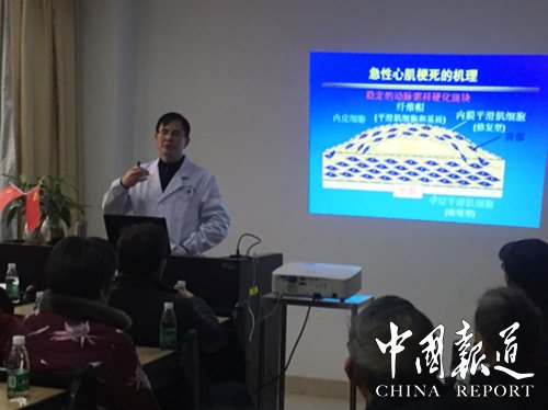 活動現(xiàn)場座無虛席,衡陽市中心醫(yī)院醫(yī)務部長、心內科主任柏太柱用PPT形式給病友們講述了急性心梗的癥狀、部位、特點等等,巧妙地把專業(yè)知識用通俗易懂的語言傳述給病友們,對心梗知識有了更深入的了解,意識到了急性心梗搶救的第一道關也是最關鍵的一關掌握在自己手里,也掌握了在120來之前的自救方法。