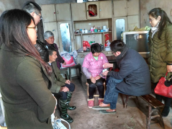 李院長(zhǎng)來到結(jié)對(duì)幫扶對(duì)象謝秋菊家里,同她和她的父母促膝長(zhǎng)談,詳細(xì)了解情況。謝秋菊今年51歲,有精神殘疾和智力殘疾,喪失勞動(dòng)能力,丈夫去世,女兒在外打工,老家房子年久失修,不能居住,現(xiàn)在與70多歲的父母一同生活。李院長(zhǎng)查看了她的身體健康狀況,仔細(xì)了解她的服藥情況。當(dāng)李院長(zhǎng)看到她幾種藥混用時(shí),囑咐她及她的父母要注意用藥安全,并詳細(xì)講解如何服藥,并認(rèn)真記下下次來時(shí)要給謝秋菊帶些治療胃潰瘍的藥品。臨別時(shí),李院長(zhǎng)給謝秋菊送上了慰問金,祝她春節(jié)快樂,并叮囑她和父母保重身體,我院一定會(huì)盡心盡力在經(jīng)濟(jì)上給予幫扶,醫(yī)療上給予救助。