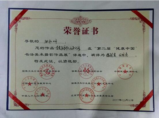 張永明喜獲“健康中國”書法美術(shù)攝影賽大獎 發(fā)布時間:2018年2月8日 預(yù)覽:1873次 為大力推進“健康中國”建設(shè),全方位倡導(dǎo)大健康理念,慶祝黨的十九大勝利召開,由國家衛(wèi)生計生委書法美術(shù)協(xié)會、國家衛(wèi)生計生委攝影協(xié)會、中國健康教育中心、中國人口宣傳教育中心、人口文化發(fā)展中心、中國人口文化發(fā)展促進會,中國家庭報社承辦的“第二屆‘健康中國’書法美術(shù)攝影作品展”于2017年12月16日—17日在北京國際會議中心隆重舉辦。我院門診辦支部書記張永明的美術(shù)作品國畫《索道醫(yī)生》榮獲一等獎、攝影作品《黨員醫(yī)療隊深入山區(qū)義診》榮獲優(yōu)秀獎,這是張永明繼去年在省衛(wèi)計委工會舉辦的書法、美術(shù)、攝影獲雙獎后又一次飛躍。 全國衛(wèi)生計生系統(tǒng)人才薈萃,活動組委會今年7月15日開始作品征集,共收到全國30多個省、市、自治區(qū)書畫、攝影藝術(shù)家及愛好者的書畫653幅,攝影作品1871幅,從參賽作品中精選出了近三百幅佳作付梓展出,書法作品楷、隸、篆、行、草等領(lǐng)異標(biāo)新;美術(shù)作品:山水、花鳥、人物等各擅勝場;攝影作品:風(fēng)光、紀(jì)實、人物等形神兼?zhèn)?。作者多?shù)來自全國衛(wèi)生計生一線,他們在緊張工作之余,特別對衛(wèi)生計生戰(zhàn)線的風(fēng)物人情盡心謳歌,突出反映了我國衛(wèi)生計生系統(tǒng)文化領(lǐng)域的重要地位與作用。作品生動展現(xiàn)了全國衛(wèi)生計生系統(tǒng)干部職工建設(shè)健康中國銳意進取、奮發(fā)有為的精神風(fēng)貌。 第二屆“健康中國”書法美術(shù)攝影開幕式和展出地點在北京會議中心舉辦,12月16日開幕式后,進行了頒獎,參觀展覽的人群來自全國各地四面八方,參觀后還開展了書畫藝術(shù)家筆會;12月17日書法、美術(shù)、攝影藝術(shù)講座還邀請了全國著名專家前來授課。 出席展出會開幕式的主要領(lǐng)導(dǎo)有國家衛(wèi)生計生委副主任、委書法美術(shù)協(xié)會主席金小桃,國家衛(wèi)生計生委醫(yī)政醫(yī)管局巡視員、委攝影協(xié)會副會長兼秘書長李路平,國家衛(wèi)生計生委計劃生育家庭發(fā)展司副司長莫麗霞,國家衛(wèi)生計生委機關(guān)黨委常務(wù)副書記、委書法美術(shù)協(xié)會副主席楊建立,國家衛(wèi)生計生委直屬機關(guān)工會常務(wù)副主席楊志媛,北京市衛(wèi)生計生委黨委委員、副主任、工會主席李彥梅等。