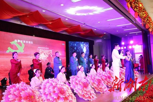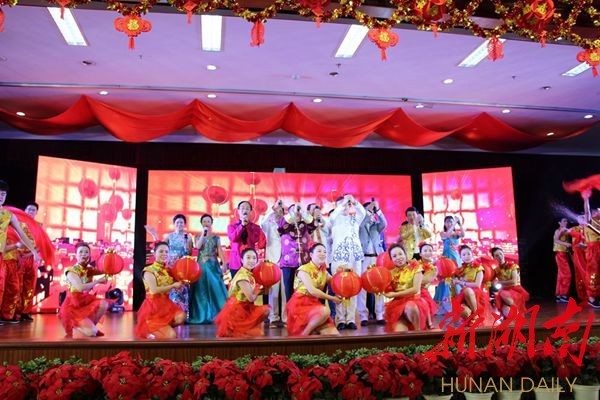 當天下午2點30分,晚會在歡快喜慶的舞蹈《共圓中國夢》中拉開帷幕。舞蹈、音樂劇、詩朗誦、歌曲串燒、小品、音樂情景劇、表演唱等節(jié)目輪番上陣,精彩紛呈。歌舞《不忘初心》抒發(fā)了醫(yī)務工作者牢記使命、砥礪前行的豪情;歌舞《擼起袖子加油干》展示了衡陽市中心醫(yī)院邁進新時代、譜寫新篇章的信心和決心。最后,晚會在大合唱《歌唱祖國》中落下帷幕。