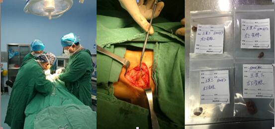 此次實施手術(shù)的患者王XX,慢性腎炎CKD5期合并III度房室傳導(dǎo)阻滯、高鉀血癥等并發(fā)癥。因“維持性血液透析5年,反復(fù)胸痛、氣促1年余,加重2天?!比朐?。術(shù)前PTH:2216.8pg/ml。經(jīng)術(shù)前心內(nèi)科植入臨時起搏器,腎內(nèi)科血液透析等準(zhǔn)備后,于3月3號在全麻下行雙側(cè)甲狀腺全切+雙喉返神經(jīng)解剖+左上部分旁腺切除+右上、下旁腺切除+左下旁腺切除+右中央?yún)^(qū)淋巴結(jié)清掃術(shù)。術(shù)后經(jīng)病理確診甲旁亢合并甲狀腺乳頭狀癌?;颊咝g(shù)后康復(fù)順利,PTH:12pg/ml。痊愈出院。