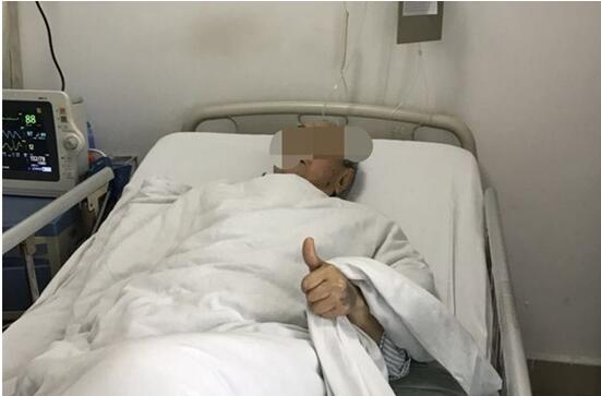 4月20日,86歲李爺爺術(shù)后安返病房,麻醉醒后露出了滿意的微笑,還朝醫(yī)務(wù)人員伸出大拇指,此舉無聲勝有聲。