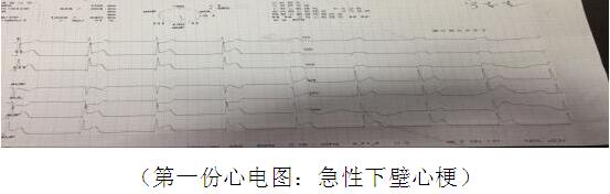 2018年4月3日22:25分,寧叔叔喝酒后突感腹痛、惡心伴大汗淋漓1小時(shí),以為是胃腸道問(wèn)題,被護(hù)送入我院急診科。當(dāng)班醫(yī)生查看患者時(shí),血壓無(wú)法監(jiān)測(cè),心電圖提示急性下壁心梗。胃痛只是表象,病情兇險(xiǎn),生命體征不穩(wěn)定,隨時(shí)需要搶救。醫(yī)務(wù)人員立即將搶救器械、物品、藥品等準(zhǔn)備就位,另一邊積極與患者及家屬說(shuō)明疾病風(fēng)險(xiǎn),心血管中心朱曉宇副主任接到緊急會(huì)診通知迅速趕來(lái)。