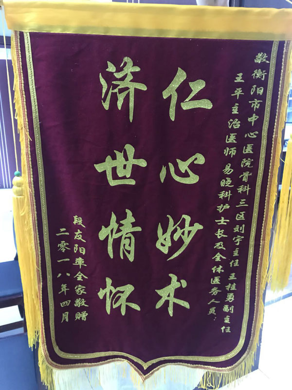 衡陽市中心醫(yī)院肝膽科2018年5月28日錦旗