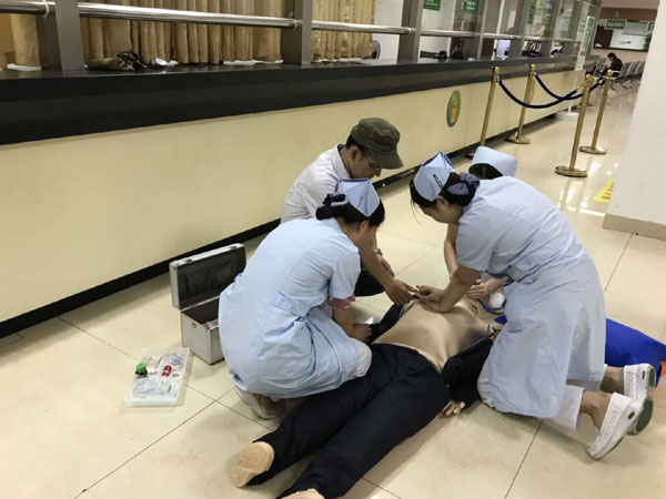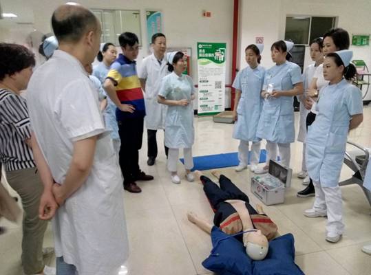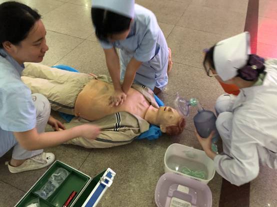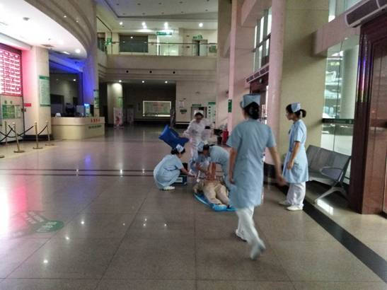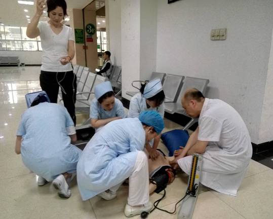 我院門診部積極開(kāi)展心肺復(fù)蘇應(yīng)急演練活動(dòng) 發(fā)布時(shí)間:2018年6月6日 預(yù)覽:2307次 通訊員張永明報(bào)道:為切實(shí)加強(qiáng)門診醫(yī)務(wù)人員應(yīng)對(duì)突發(fā)事件的快速反應(yīng)能力,6月4日下班后,門診部組織分診、導(dǎo)診護(hù)士在門診進(jìn)行心肺復(fù)蘇(CPR)應(yīng)急預(yù)案演練,將原先在六樓示教室的技能培訓(xùn)轉(zhuǎn)移到門診進(jìn)行現(xiàn)場(chǎng)演練,提高實(shí)戰(zhàn)的能力。 原來(lái),早在5月30日,醫(yī)務(wù)部就在門診三樓組織了應(yīng)急演練考核,由預(yù)先安排人員冒充暈倒在座椅上的病人,再用人體模型讓醫(yī)護(hù)人員進(jìn)行實(shí)際操作,來(lái)檢測(cè)周邊經(jīng)過(guò)的醫(yī)務(wù)人員急救意識(shí)和應(yīng)對(duì)能力,當(dāng)門診脊柱外科肖華斌醫(yī)師聽(tīng)到分診護(hù)士顏娜呼救時(shí),立即趕到現(xiàn)場(chǎng),通過(guò)判斷患者意識(shí)、聽(tīng)呼吸、摸頸動(dòng)脈搏動(dòng),發(fā)現(xiàn)患者心跳呼吸停止,馬上進(jìn)行胸外心臟按壓、開(kāi)放氣道、人工呼吸等一系列搶救措施。 據(jù)悉,應(yīng)急演練重點(diǎn)是實(shí)地考察心肺復(fù)蘇操作技能在平時(shí)工作中在應(yīng)用,對(duì)演練過(guò)程中暴露出的一些問(wèn)題進(jìn)行整改。通過(guò)演練,醫(yī)務(wù)人員突發(fā)事件后服從統(tǒng)一指揮,對(duì)整體施救流程、搶救意識(shí)明顯提高。醫(yī)護(hù)一體化心肺復(fù)蘇模擬演練有利于提高門診危重患者搶救成功率,同時(shí)也大大提升了門診醫(yī)務(wù)人員的急救能力,進(jìn)一步規(guī)范了應(yīng)急處置程序。