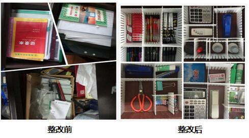 五是物品定位、統(tǒng)一標(biāo)示。大到柜門,小到抽屜隔板都加注標(biāo)簽,方便取物。另人力資源部還自掏腰包購置了統(tǒng)一的水杯、收納盒等。