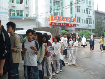 萬名城區(qū)高考學(xué)生在我院接受體檢 發(fā)布時(shí)間:2006年5月22日 預(yù)覽:6121次 市中心醫(yī)院精心組織并提醒考生注意事項(xiàng) 通訊員鄒建軍報(bào)道 本市高考學(xué)生體檢工作4月10日啟動(dòng),城區(qū)近萬名考生將分批到市中心醫(yī)院接受體檢,此次體檢預(yù)計(jì)在本月29日結(jié)束。 體檢第一天,筆者在市中心醫(yī)院體檢中心看到,數(shù)百名參加體檢的考生正在工作人員的帶領(lǐng)下有條不紊地進(jìn)行透視、內(nèi)外科、身高體重、視力、聽力、血壓、嗅覺等10多個(gè)項(xiàng)目的檢查。據(jù)連續(xù)6年參與組織全市城區(qū)高考體檢工作的市中心醫(yī)院院長(zhǎng)段曉明博士介紹,該院每年都會(huì)把高考體檢工作作為重要任務(wù)認(rèn)真抓好,醫(yī)院多次召開專題會(huì)議進(jìn)行部署安排,要求體檢專家必須嚴(yán)格按照《普通高等學(xué)校招生體檢工作指導(dǎo)意見》把握好標(biāo)準(zhǔn),遵守體檢紀(jì)律,體檢時(shí)必須關(guān)閉通訊工具,體檢場(chǎng)地要求全封閉,無關(guān)人員一律不得入內(nèi)。為組織好今年的體檢工作,市中心醫(yī)院還特地對(duì)體檢中心進(jìn)行了裝修,配備了全新的體檢用具和智能體檢軟件系統(tǒng)。 市中心醫(yī)院的專家還提醒參檢考生在體檢前一天要注意休息,保證睡眠;體檢當(dāng)天飲食不能過飽,要適量進(jìn)一些清淡飲食;體檢時(shí)不要過度緊張,以免影響體檢效果;考生更不得擅自涂改體檢表上內(nèi)容或?qū)Ⅲw檢表帶出體檢場(chǎng)地外,否則將會(huì)視為廢表。