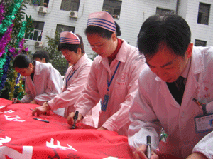 我院結(jié)合開展醫(yī)院管理年活動促進(jìn)醫(yī)院服務(wù)質(zhì)量不斷優(yōu)化 發(fā)布時(shí)間:2006年5月17日 預(yù)覽:5104次 湖南省衡陽市中心醫(yī)院結(jié)合開展醫(yī)院管理年活動,強(qiáng)化對醫(yī)護(hù)人員進(jìn)行醫(yī)德醫(yī)風(fēng)和職業(yè)道德教育,促進(jìn)醫(yī)院服務(wù)質(zhì)量不斷優(yōu)化。圖為該院組織醫(yī)護(hù)人員舉行“崇尚醫(yī)德”宣誓和“仁心濟(jì)世”簽名活動?! ?BR>(鄒建軍攝影報(bào)道)