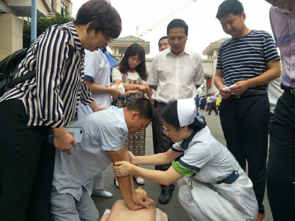 科普日圖片新聞 發(fā)布時間:2018年09月27日 11:29:23 預(yù)覽:2257次 9月26日是全國科普日,衡陽市中心醫(yī)院組隊參加市里統(tǒng)一組織的科普活動,宣傳“救”在身邊急救知識,市民踴躍參與。圖為醫(yī)務(wù)人員手把手教市民進(jìn)行心肺復(fù)蘇操作。(殷君發(fā))